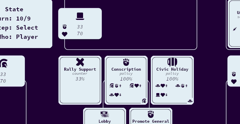 Pop ups have been added for several interactive and informative elements on the screen. Pop ups have also been added to help clarify whoโs โturnโ it is.