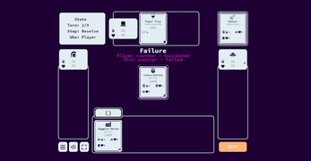 4 Resolving: Once the player and strata have had the opportunity to play their counter cards the outcome of the played card will be resolved. Each counter card will be determined to be successful or not. If any counter card is successful the played card does not take effect. If all counter cards fail and the Played card passes its own roll then its effects are applied.