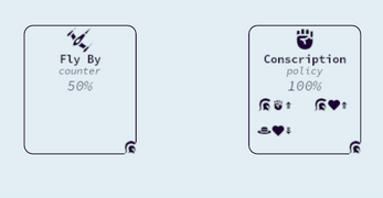 Chance: The likelihood the cards effects will be applied. Most policies are 100% effective, and most counters are 50% or less effective.